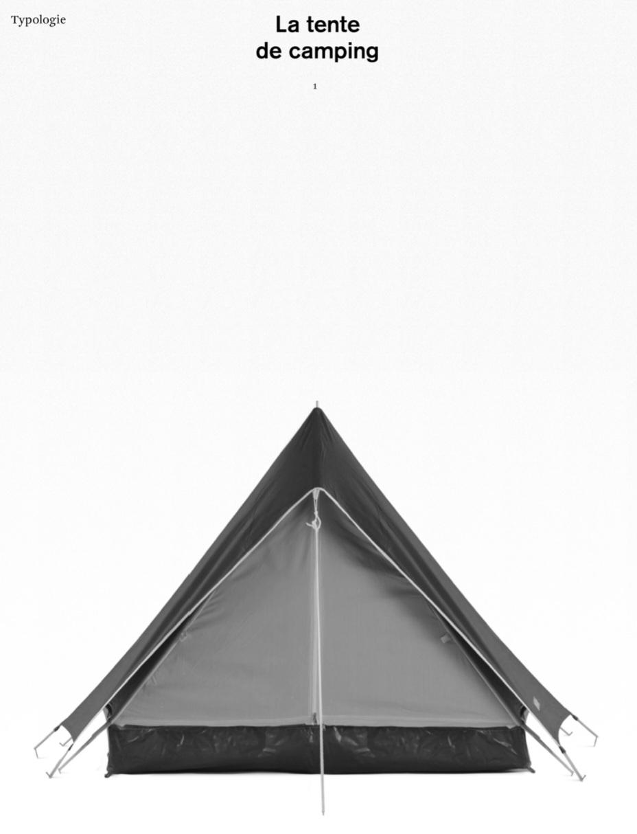 Typologie è una collana editoriale indipendente che analizza oggetti di uso comune per comprenderne struttura e significato. Il volume è dedicato alla tenda, esplorata come sistema progettuale che integra materiali, tecnologia e design.