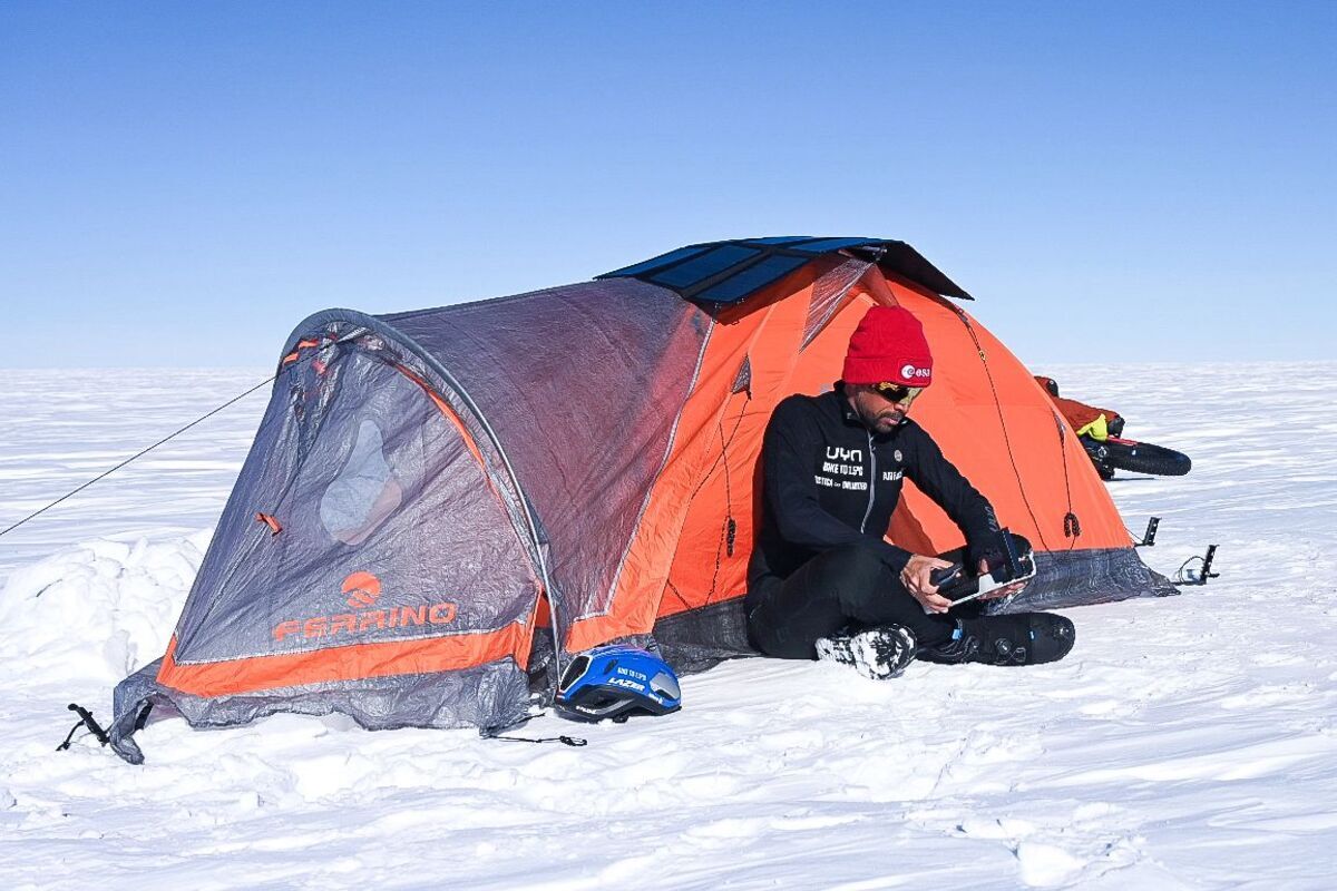 Se devo essere sincero nella preparazione della spedizione non abbiamo lavorato troppo sulla personalizzazione delle attrezzature, cercando di elaborare qualcosa di speciale, pensato appositamente per la spedizione. Mi sono affidato ai prodotti tecnici che Ferrino ha in catalogo, già ampiamente testati per l’uso in condizioni estreme nell’ambiente outdoor. Con me avevo la tenda Blizzad, già compagna fidata di tante spedizioni, alla quale abbiamo apportato solo qualche piccola modifica per rendere più agevole il montaggio e lo smontaggio con i terribili venti antartici. Poi il sacco piuma Revolution 1200, il migliore della serie come potere di isolamento termico, e una serie di materassini accoppiati gonfiabili e non. Quello che per me ha fatto la differenza, confermando la reputazione che Ferrino si è guadagnata negli anni, è stata la totale affidabilità. Quando devi stare 50 giorni da solo in Antartide devi avere la tranquillità di sapere che la tenda non si strapperà, che il palo non si romperà, che il materassino non ti lascerà letteralmente a terra… Su questo, ancora una volta, devo dare il massimo dei punti a Ferrino: dal primo all’ultimo giorno le sue attrezzature mi hanno garantito di fare quello che facevo in sicurezza e di non lasciarmi mai veramente scoperto. Infatti tutti i materiali sono tornati a casa totalmente integri e senza nessun tipo di danno.
