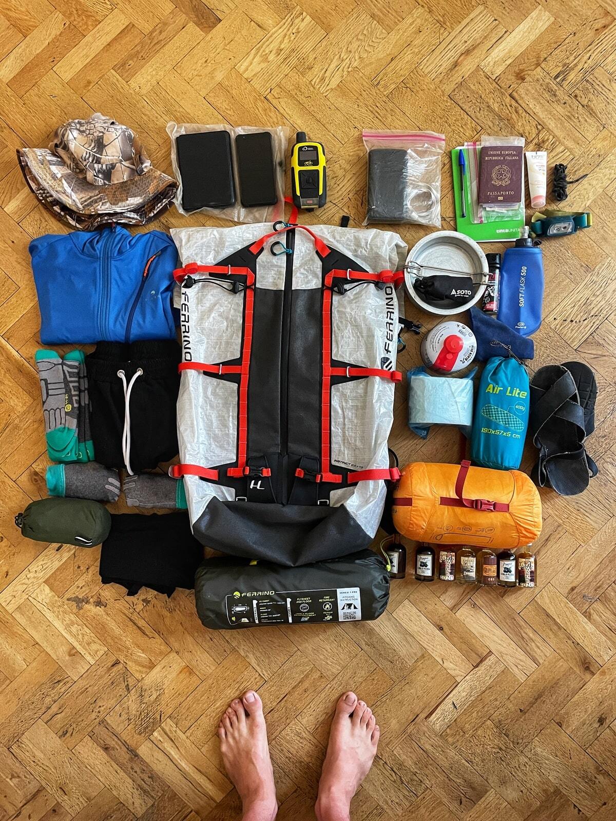 Ci volle poco a prendere la decisione. Stavo camminando da quattro anni spingendo un passeggino e avevo voglia di cambiare, di barattare la strada asfaltata per un sentiero di montagna e quaranta chili di comodità per un equipaggiamento essenziale. Perché prendere la via più semplice quando si possono complicare le cose? In realtà si trattava di ampliare la mia zona di comfort e mettere il naso in una categoria di cui Diogene sarebbe andato fiero, l’ultralight. Dato che questa volta avrei dovuto caricare tutto sulla schiena, sgrammare il setup sembrava un’idea buona e giusta. Presi contatto con Silvia del team marketing di Ferrino e le proposi la quadra: tra tenda, materassino e sacco a pelo avrei risparmiato quasi due chili. La tenda tre stagioni, monoposto e free-standing serie Nemesi avrebbe ospitato me e il contenuto dei 65 litri di zaino Istinct, un proiettile in dyneema leggero e impermeabile.