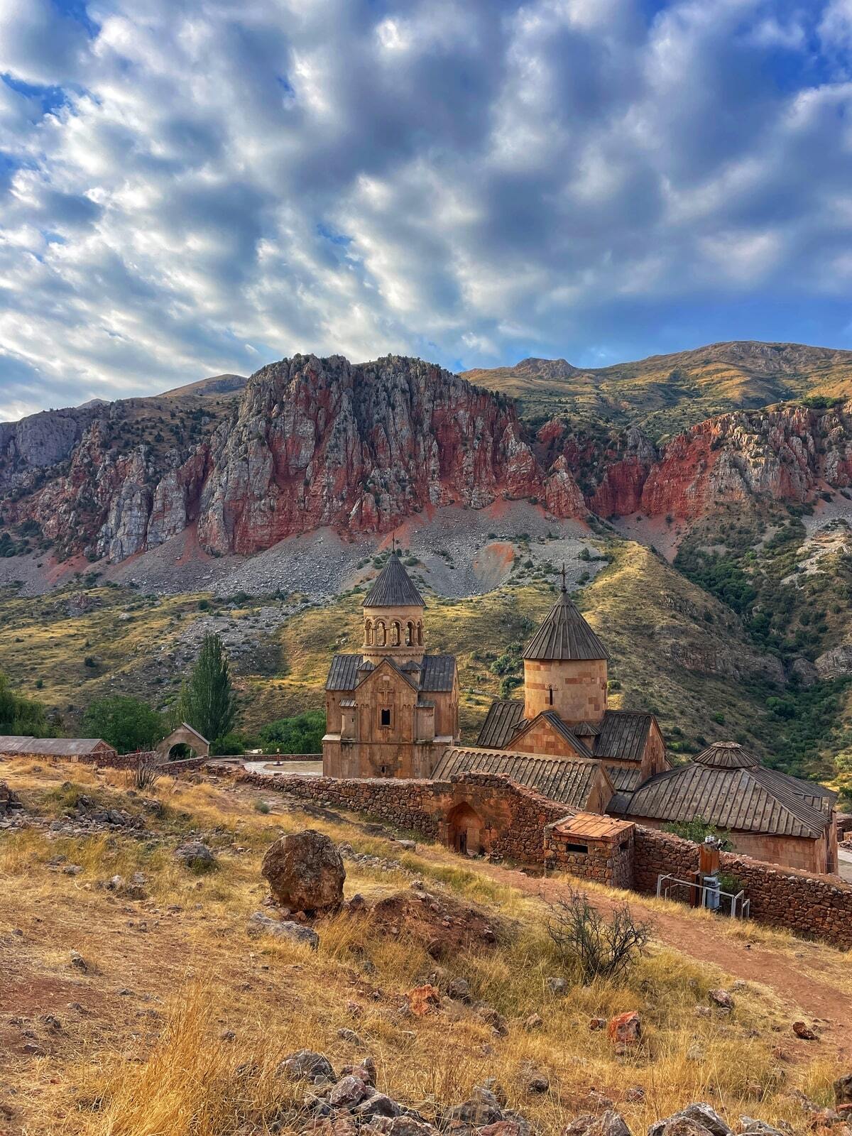 Nel giro di una settimana il corpo si abituò ai carichi (erano anche scomparse le grappe) e la fatica venne rimpiazzata dal puro piacere di camminare. Dopo la cima mancata del monte Khustup arrivarono le prime gemme del cammino: le cascate di Shaki e i monasteri di Tatev e Noravank, entrambi a un passo dall’essere dichiarati Patrimoni dell’Unesco. L’Armenia dispone di una quantità impressionante di siti religiosi e nell’abbondanza di montagne cui si accennava poco sopra, chiese e complessi monastici si sono appropriati di luoghi particolarmente scenografici. Noravank è stato costruito in fondo a una gola di rocce rosso fuoco mentre Tatev si trova sull’orlo di una rupe a qualcosa come cinquecento metri di altezza dal fiume che scorre a valle. C’è chi ci va in auto, pochi a piedi, ma la maggior parte arriva con la funicolare più lunga al mondo godendosi un volo spettacolare sul baratro sotto la cabinovia.