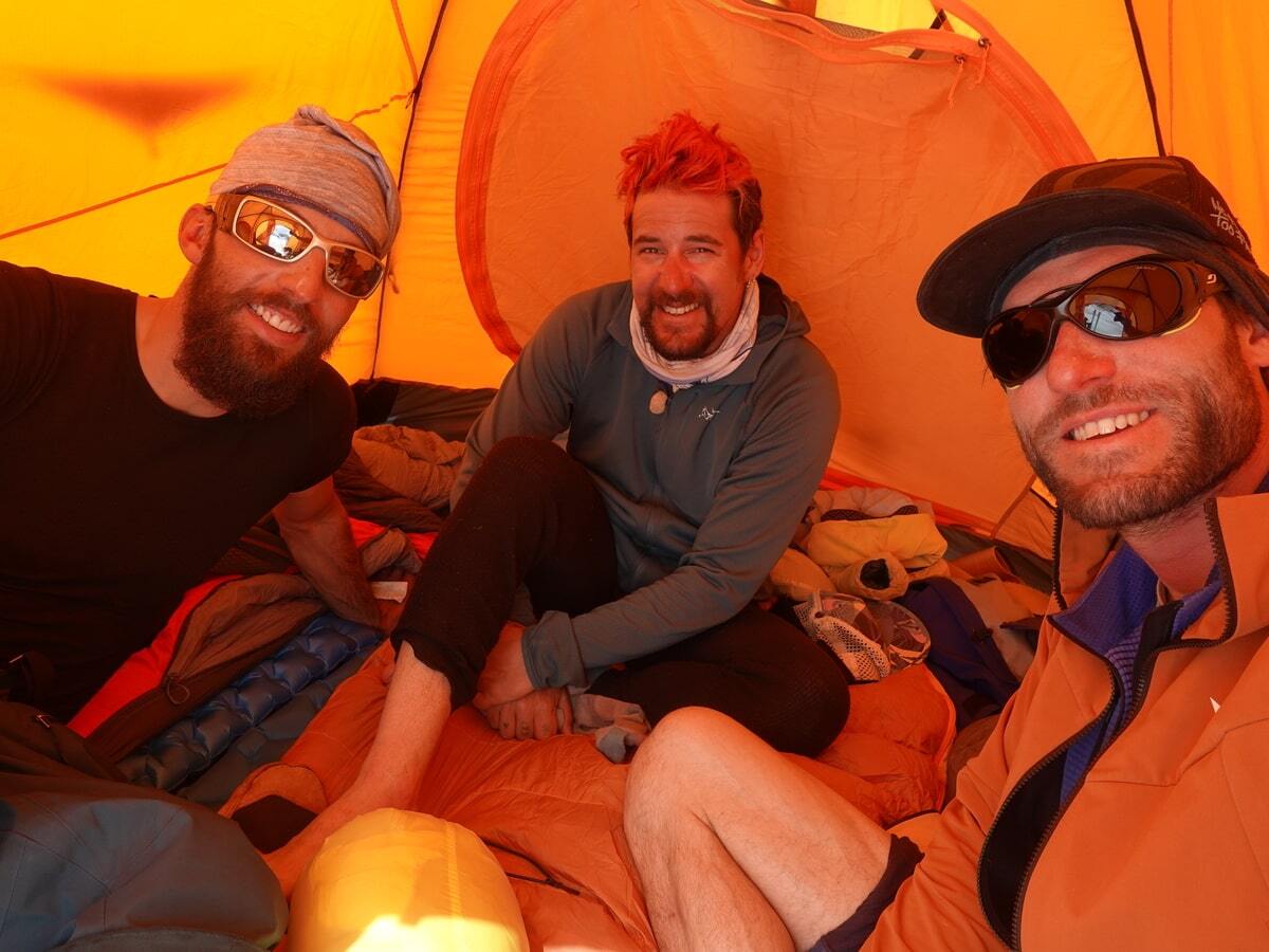 In realtà in un primo tempo avevo pensato di andare da solo. Poi ho avuto occasione di parlarne con Giovanni Zaccaria, anche lui guida alpina e tecnico del soccorso alpino, con il quale, pur non avendo mai sciato, avevo condiviso un po’ di esperienze alpinistiche. Lui si è subito dimostrato entusiasta rispetto al progetto e, poco dopo, si è unito anche Davide Limongi, mio compaesano e compagno fidato di tante avventure sigli sci. Abbiamo organizzato tutto in fretta e furia, perché avevamo i giorni contati: Giovanni doveva rientrare il Italia tassativamente entro il 19 maggio per un matrimonio, e Davide, essendo un membro della Guardia di Finanza ha dovuto attendere di avere dai suoi superiori tutti i permessi per poter partire; quindi siamo riusciti a prendere l’aereo solo il 25 di aprile…